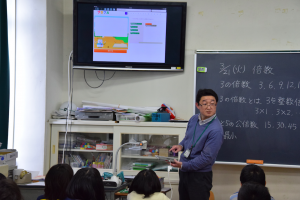 プログラムづくりを通して公倍数、最小公倍数の求め方を考える。 | 整数を倍数の観点から分類して考えている。