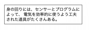 身の回りにある電気を効率的に使う道具について、プログラミングをしながら再現をしたり、それらを見直したりしようとする。(関心・意欲・態度)