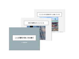 T 電気はつくり出したり、蓄えたりすることができましたね。 T その電気を無駄なく使うために、センサーを使っている道具があります。どんな道具でしょうか。 C 街灯、センサーライト、… T しかし、こちらには、電気を効率的に使っていない道具があります。