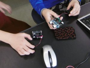 子どもたちが課題を解決するためにどのような道具を考え,そのために必要なプログラムを考え,micro:bitを動かし,それをさらによりよいものにしていくようにさせる。そうした過程の中で友だちと対話したり,試行錯誤をさせたりして,粘り強く探求させたい。