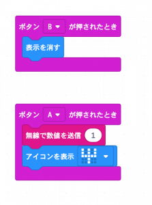 機能1:リモコン2台(micro:bit)を操作し,椅子が上がってくる