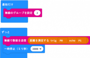 使用したもの:micro:bit2個,プログラム制御スイッチ,ブルーソニック