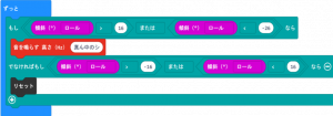 改善点:MakeCodeの初期値の傾きでは食器が落ちてしまう。